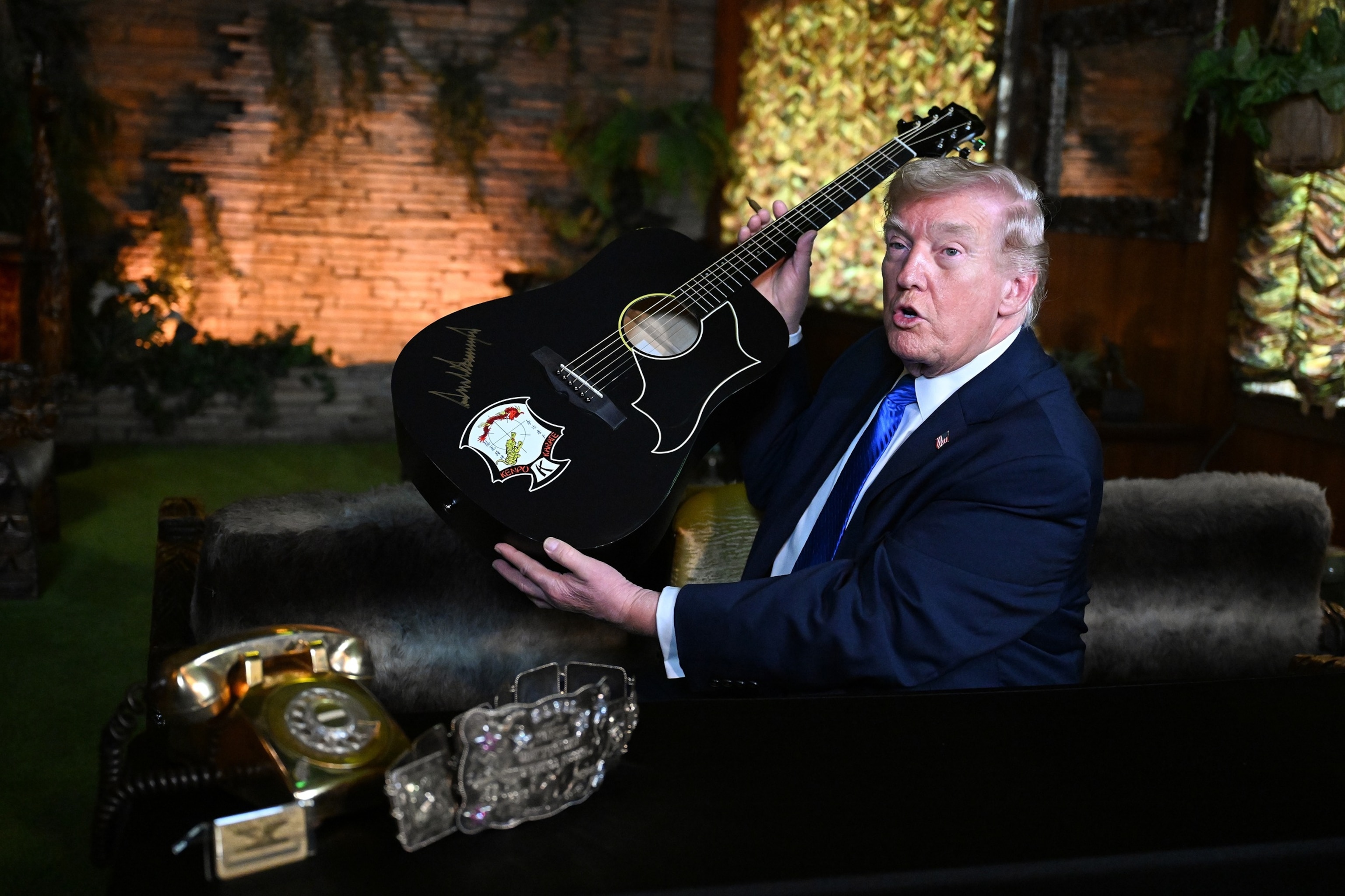 Trump também autografou uma réplica da guitarra que Presley usou em seu show "Aloha from Hawaii" de 1973.